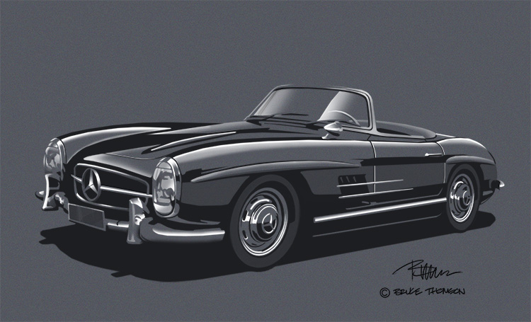 “Coloured paper” is in quotes – as this is entirely digital. This is an old Industrial Design rendering technique I teach my students (for “real” examples of this see my website under “renderings”). It’s a tricky one to learn and hard to do correctly – however, it works amazingly in the digital format. Essentially you take your sketch in, establish a “paper” (or background) colour and then simply dodge and burn, or alternatively, render in black and white. I suspect I’ll be knocking off a couple of these in the next few weeks…