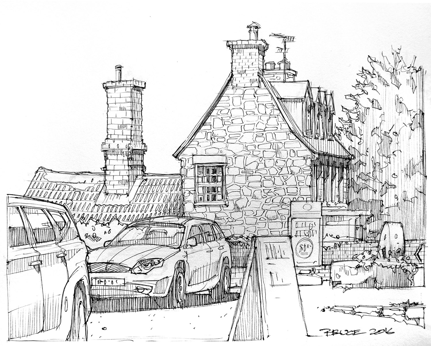 Sketched this while having lunch at the Red Lion, the only Pub in Avebury. It’s also the only pub in the world inside a stone circle (or a henge). We had lunch and a couple of drinks and then went out and walked amongst the stones, down to Silsbury hill and the West Kennet barrow – all neolithic sites in the area.