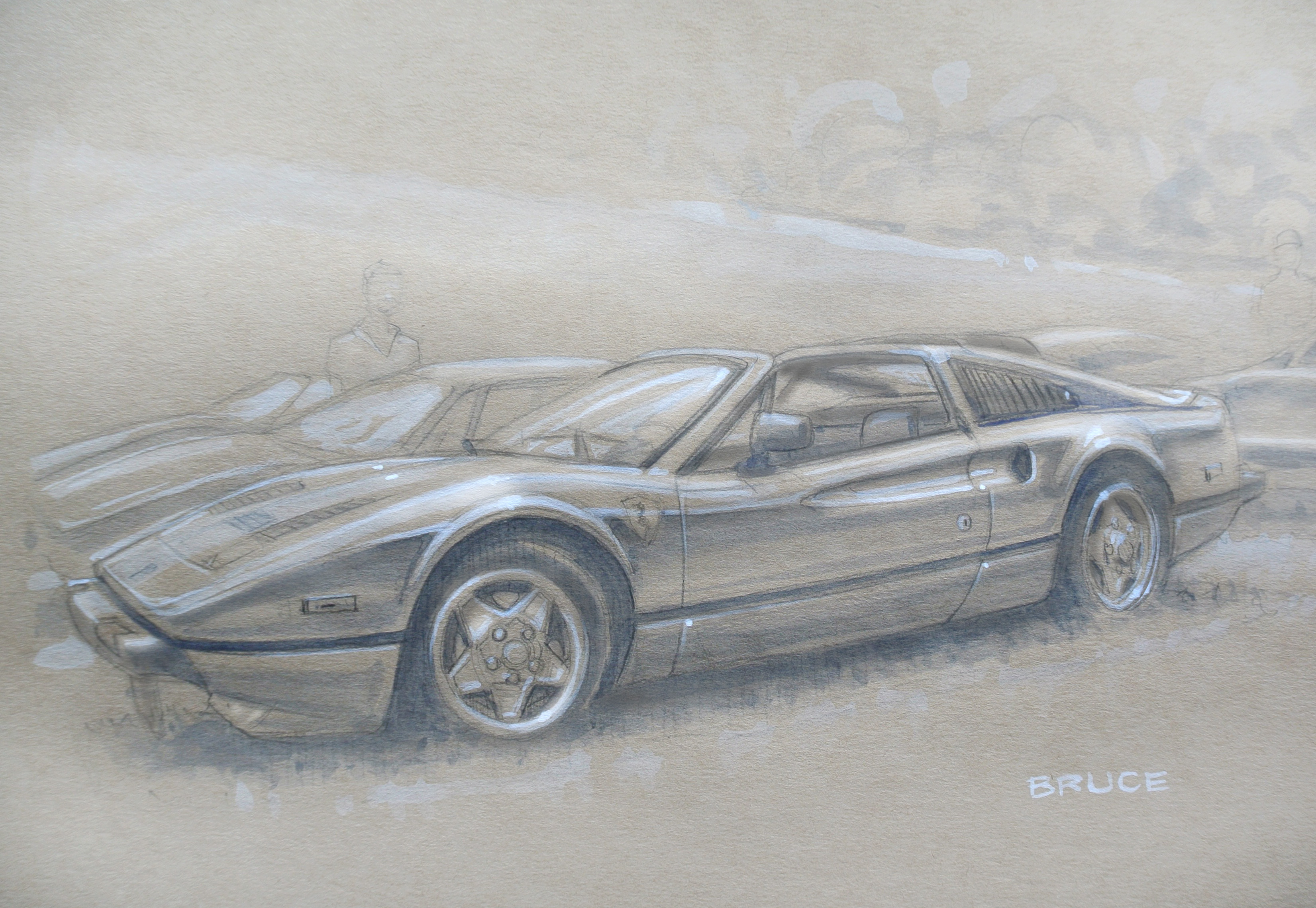 Got a new sketchbook from Muji which I quite like, craft paper as you can see. Did this sketch of a lovely Ferrari 308 GTB from Italian car Day 2016, but am a little unhappy with it. Love the paper, but I used Payne’s Gray for the tone which was a mistake, and then tried to rescue it by over-rendering it… Ivory Black would have served better if I’d used it sparingly. Ah well – next time.