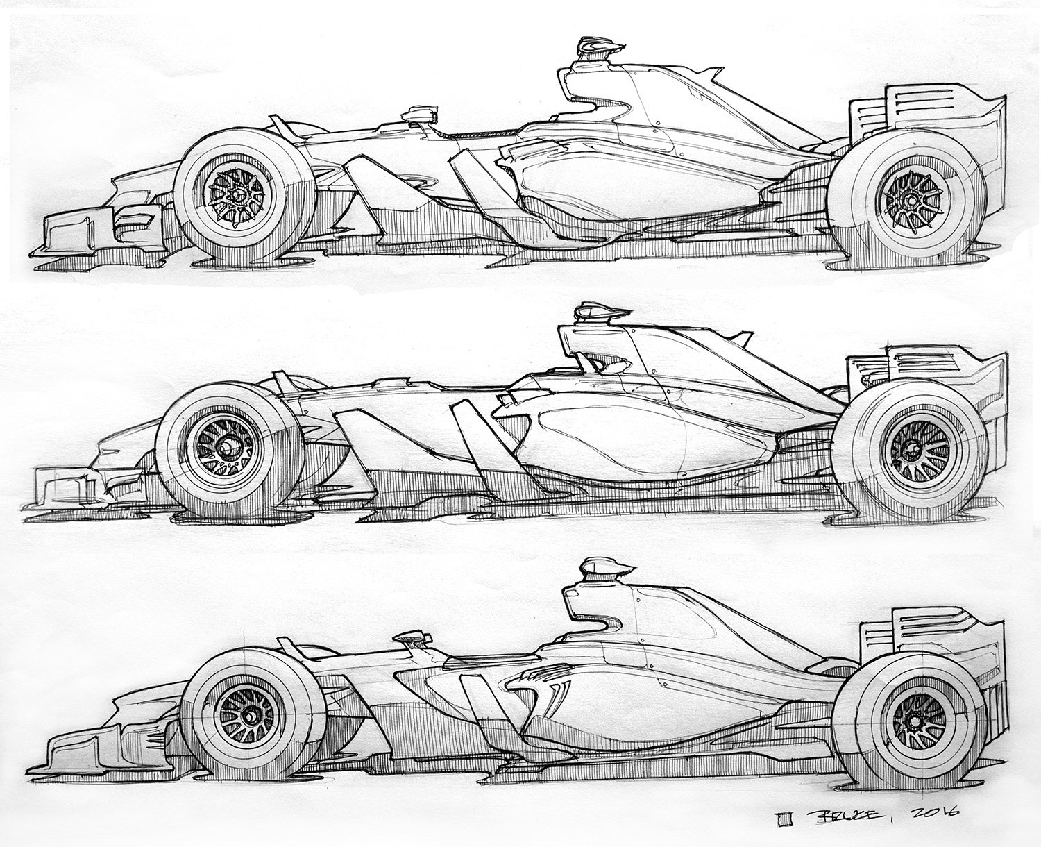Trying to get a head start on my 2017 F1 concepts, the sketches above are largely the same but with different detailing… Thinking of using elements from all 3…