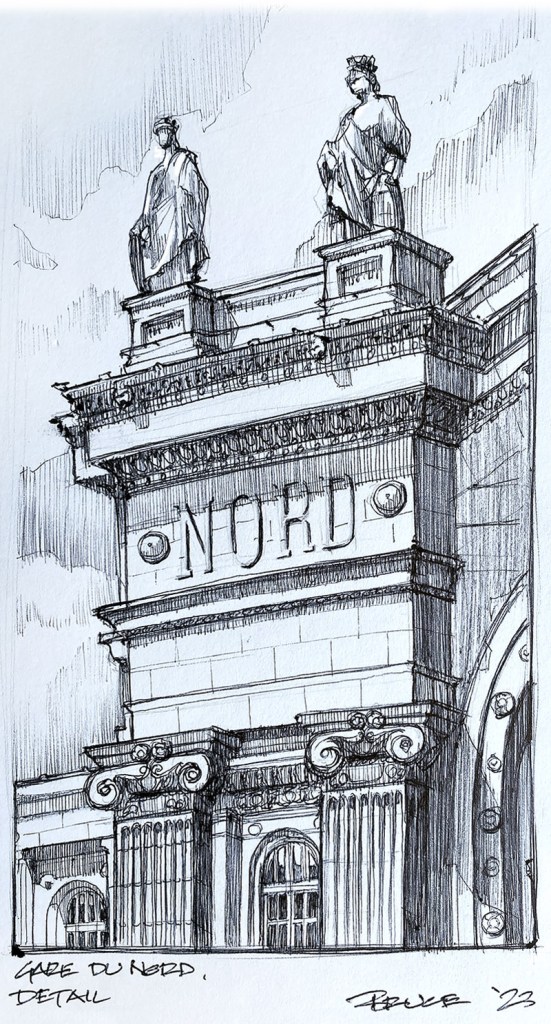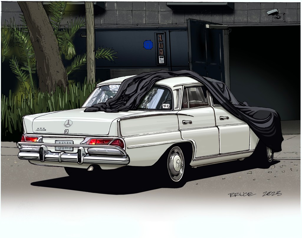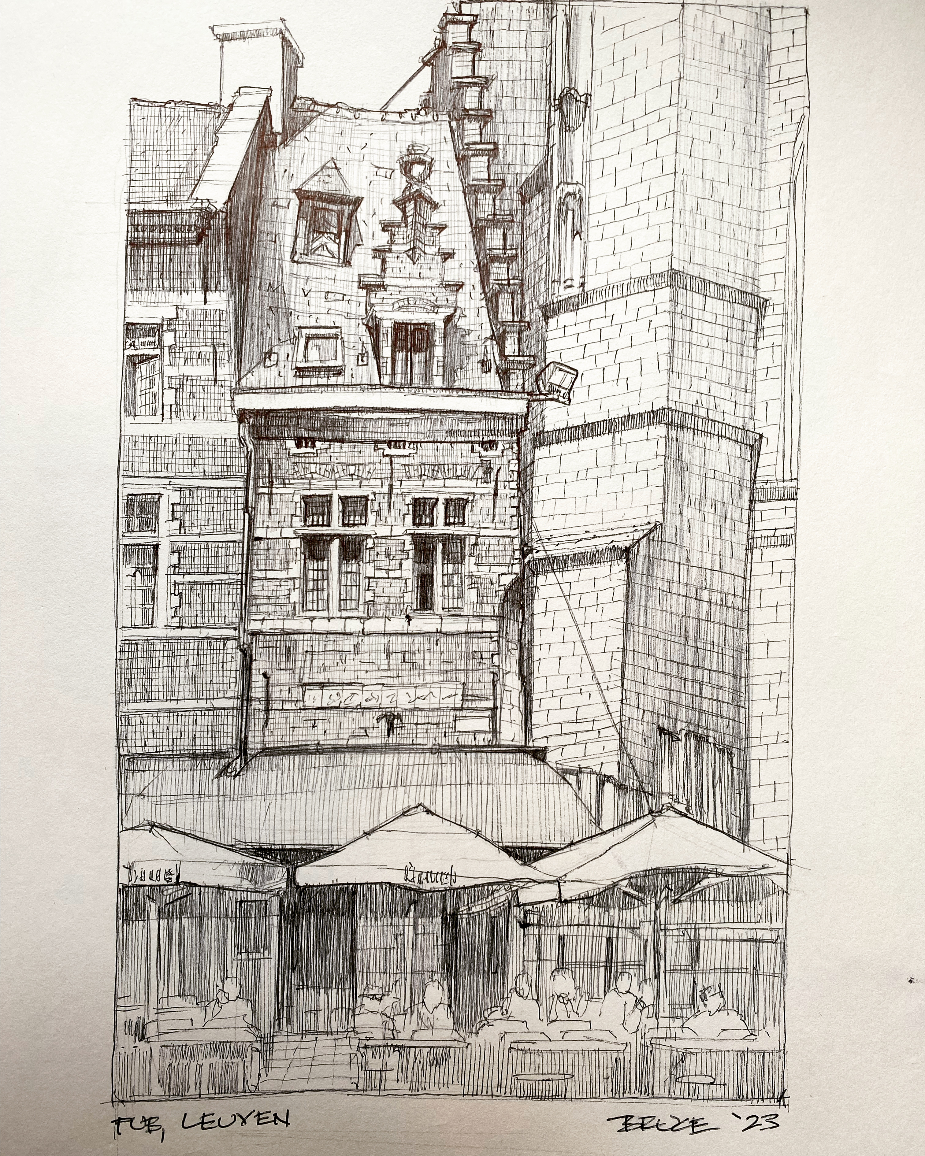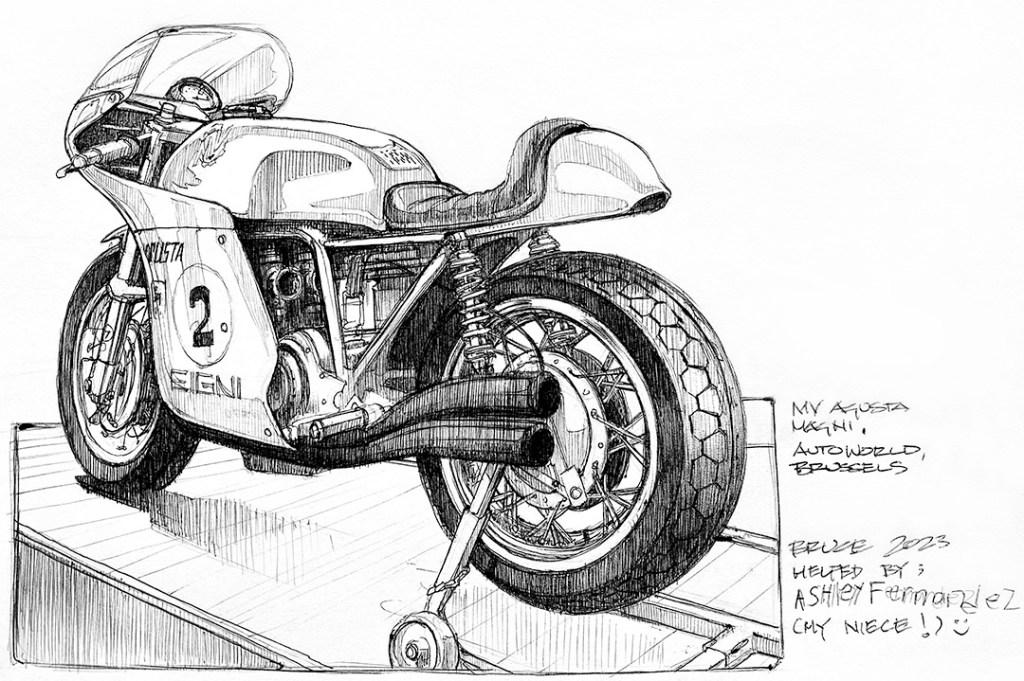 Evelyn and I saw this drive by on Lakeshore Blvd. in Burlington a week or two ago, and then later, came across it in a driveway. I was pleased, as I’d been driving when I first passed and didn’t get a photo, but, that rectified I came home and sketched. Not sure what you would call this, Racer? Roadster? But quite the vehicle!